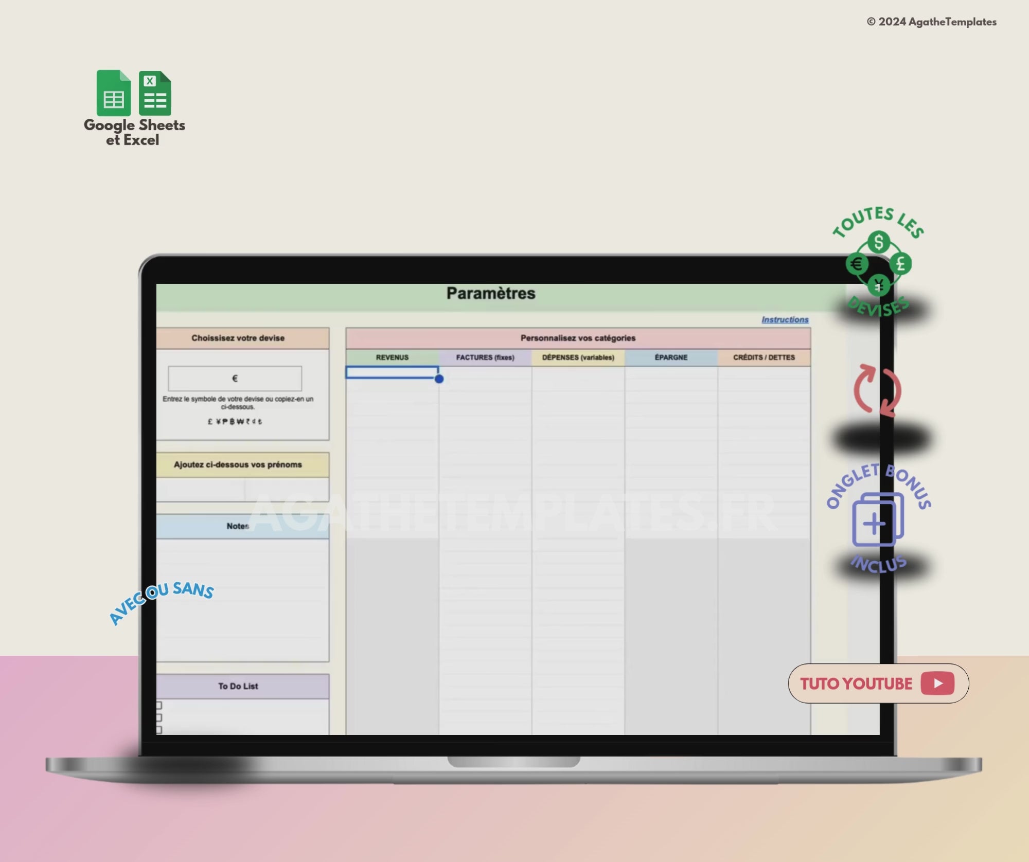 - Droits d’auteur : Ce produit est protégé par les droits d’auteur ©AgatheTemplates. Toute violation fera l’objet de poursuites conformément aux lois en vigueur.