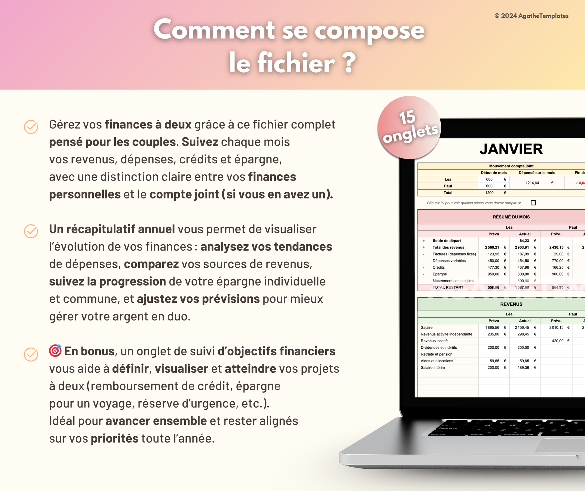 💰❤️ Organisez vos finances à deux avec ce planificateur de Budget mensuel et suivi annuel complet, pensé pour tous les couples, que vous ayez un compte joint ou non !