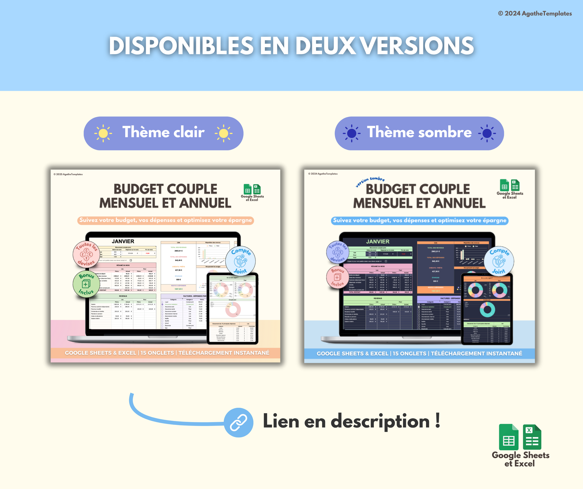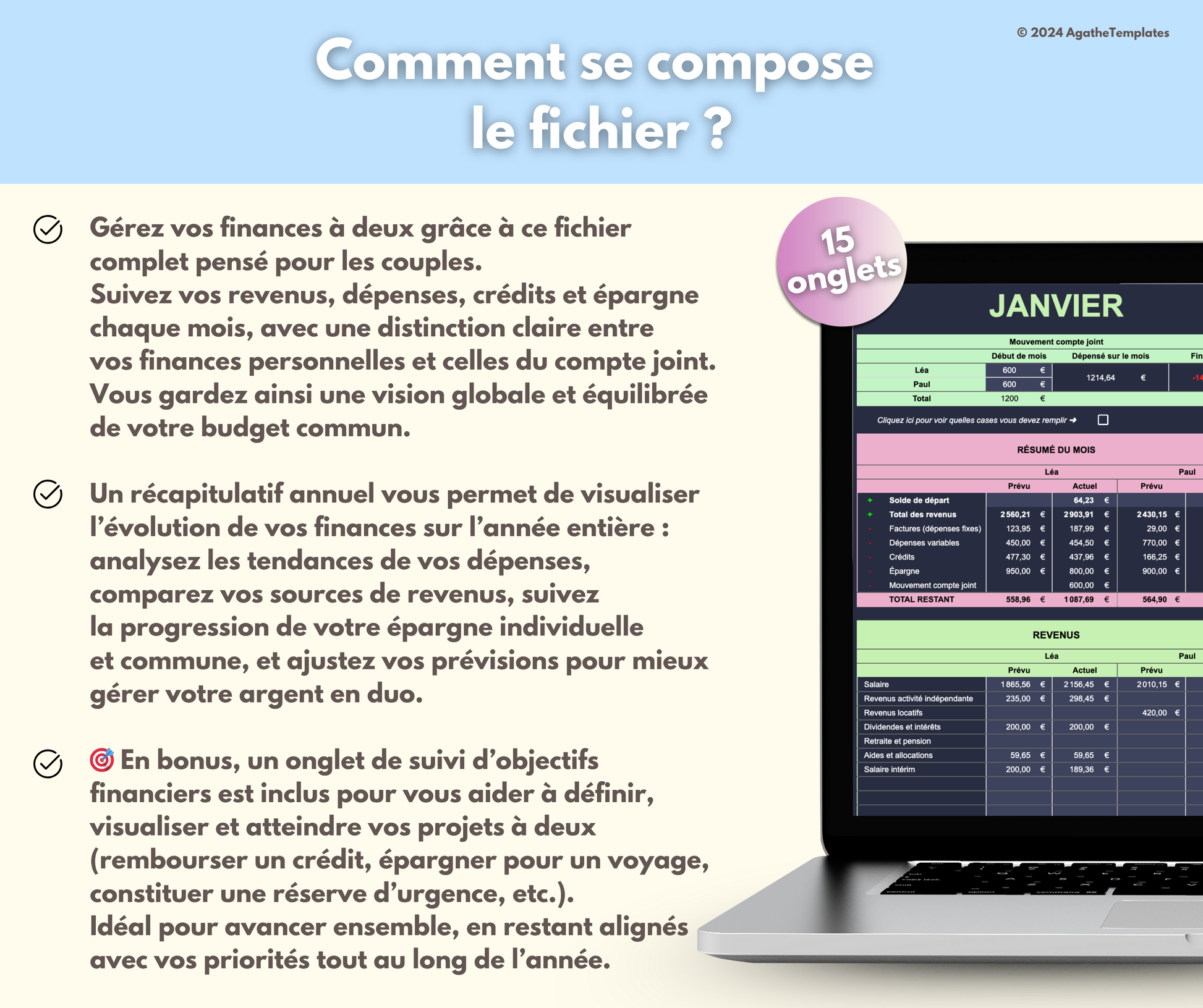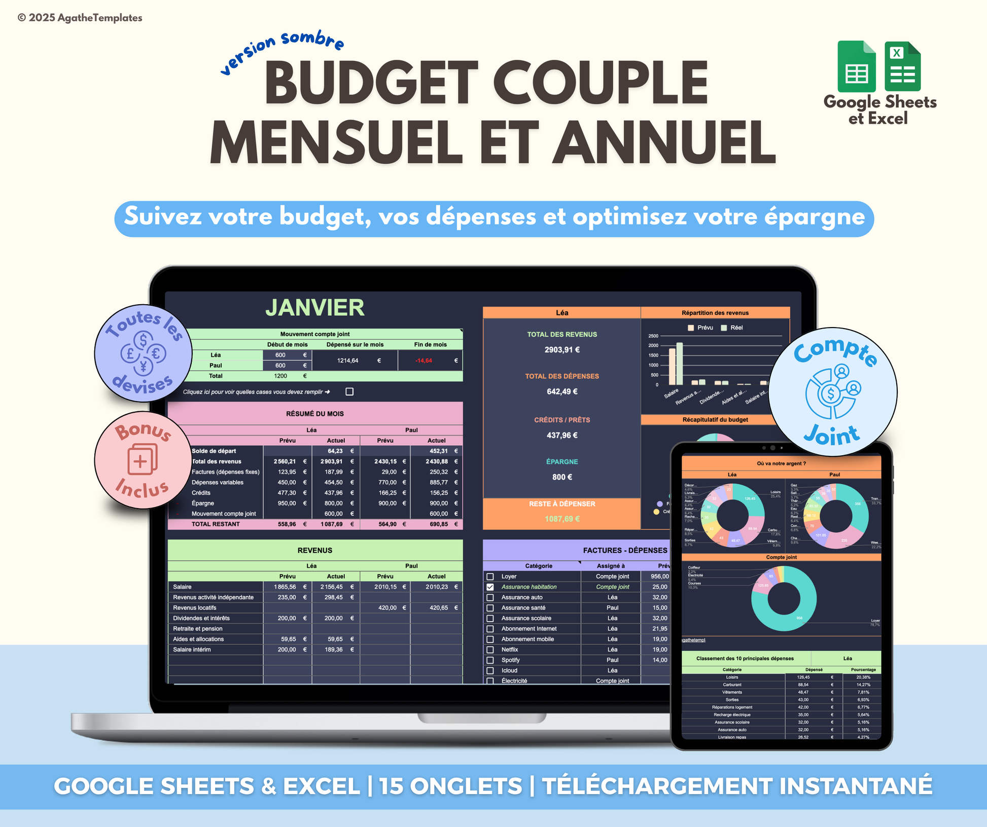 đ°â€ïž Organisez vos finances Ă deux avec ce planificateur de budget mensuel et suivi annuel complet, pensĂ© pour les couples qui gĂšrent un compte joint en plus de leurs finances personnelles !