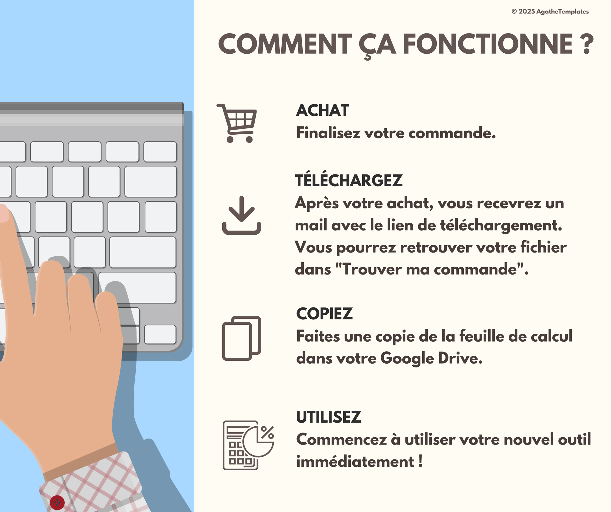 • Un fichier PDF contenant le lien pour accéder à votre modèle Google Sheets et/ou Excel.