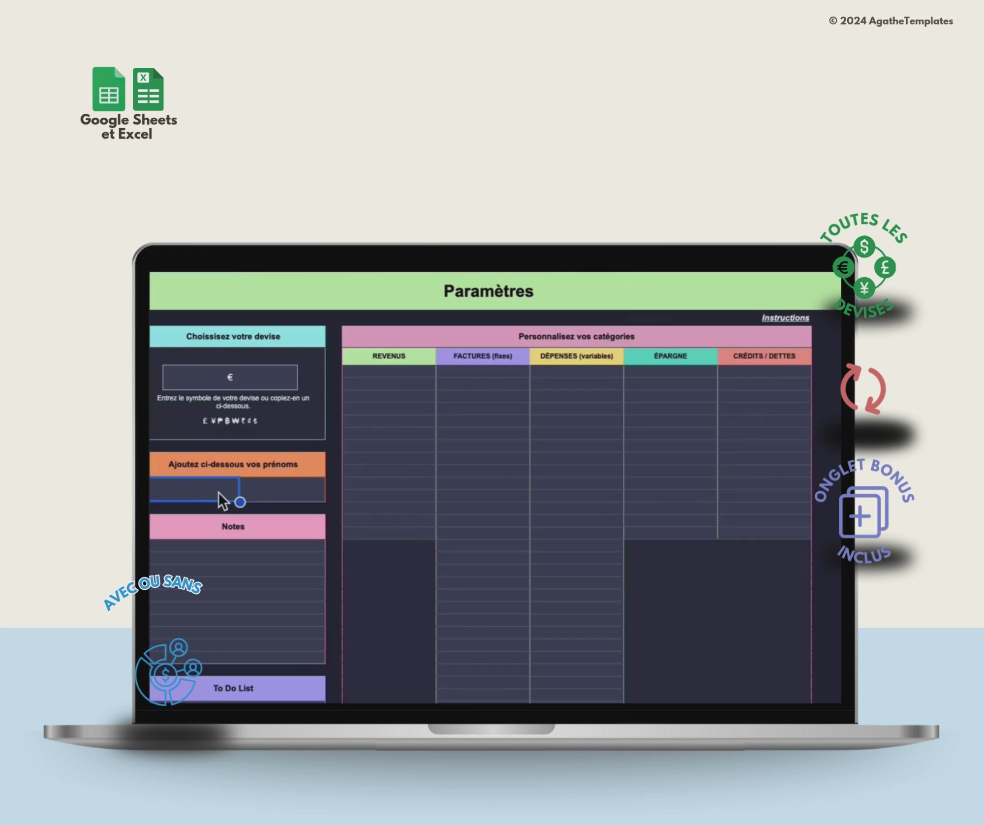 • Un guide avec des instructions détaillées pour configurer et utiliser facilement la feuille de calcul.