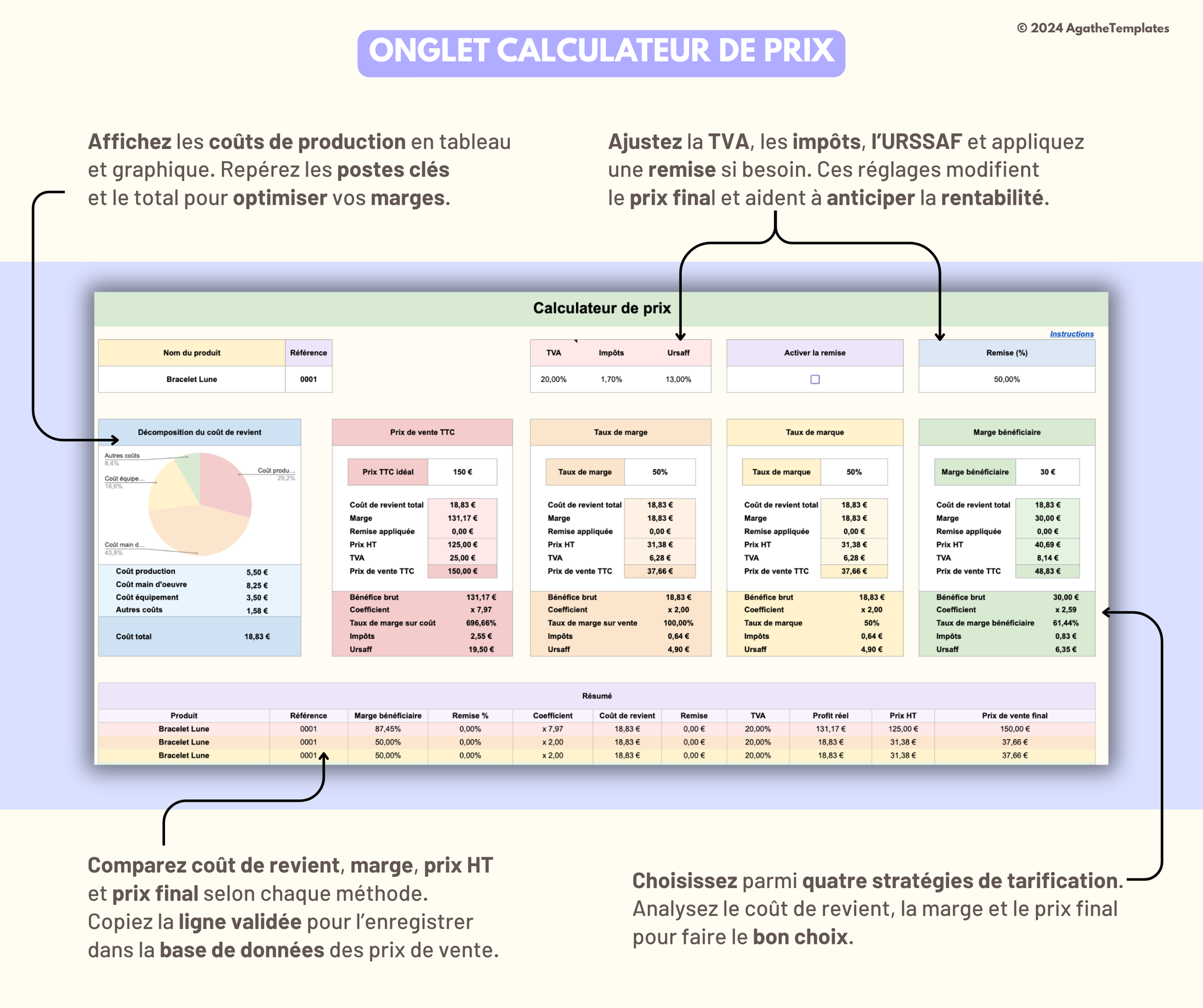 - Optimisez votre rentabilité en ajustant vos prix en fonction des coûts et des bénéfices souhaités.