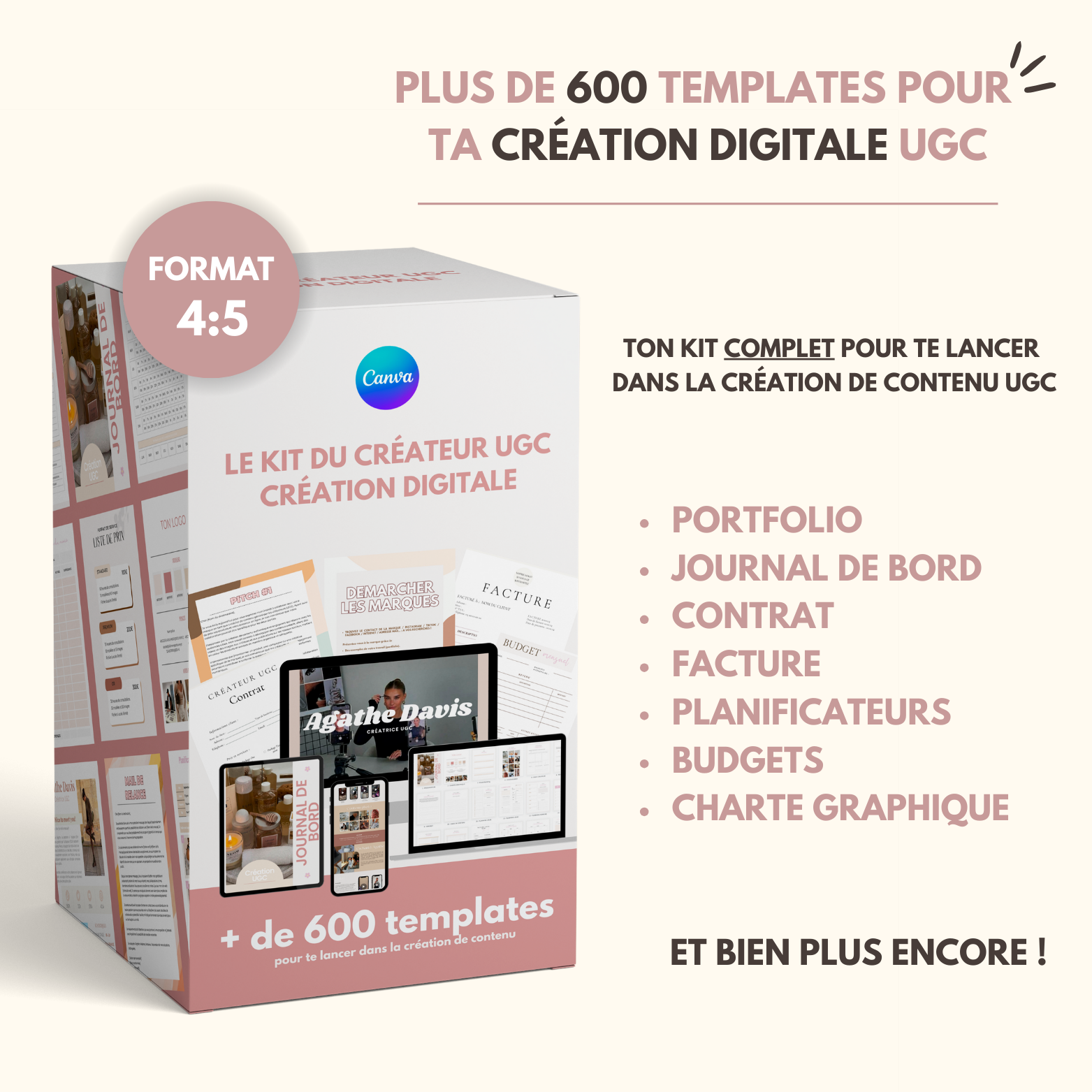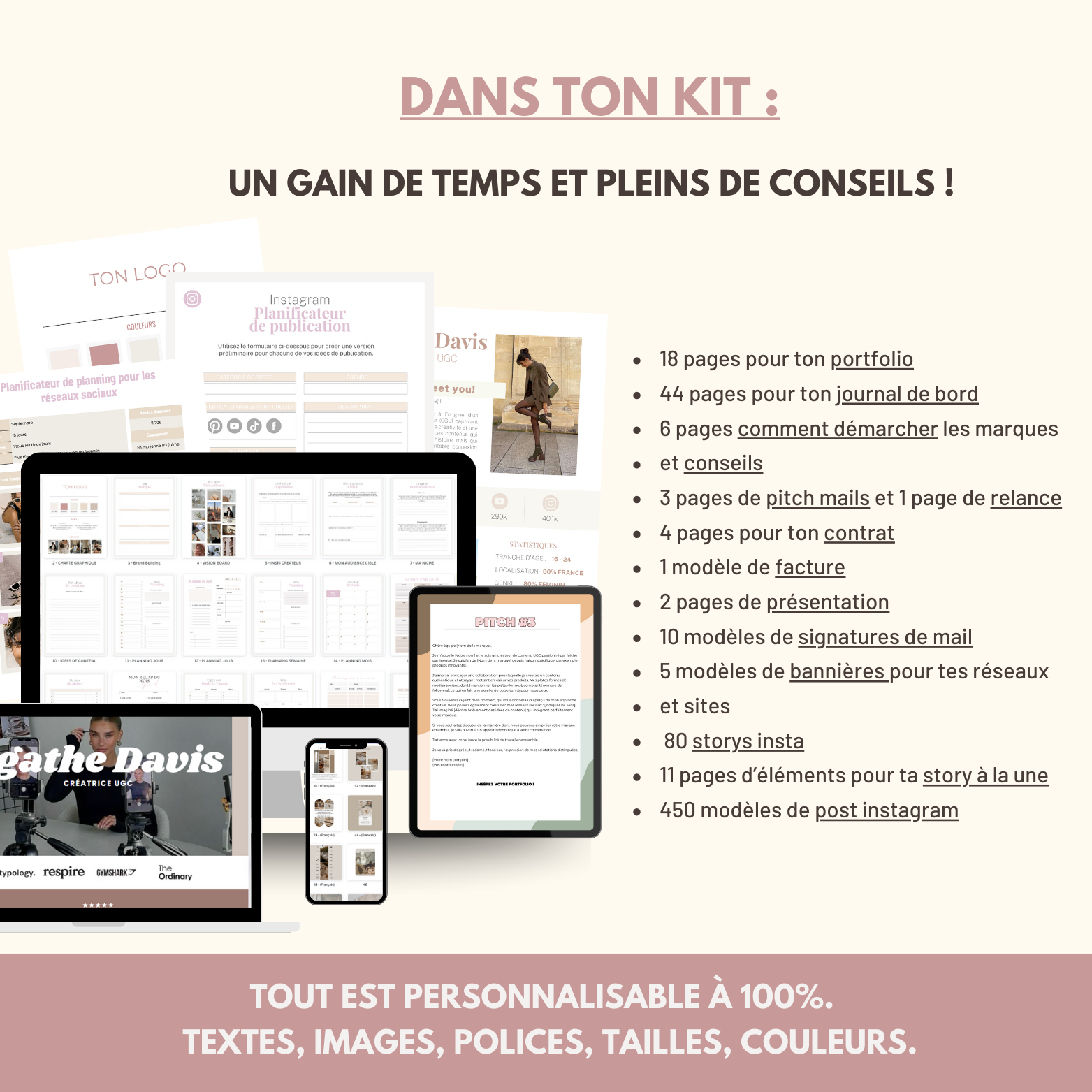 🌸Transformez votre portfolio de créateurs UGC avec ce pack complet comprenant tout ce dont vous avez besoin pour vous démarquer. Que vous cherchiez à contacter des marques, à créer des visuels pour vos réseaux sociaux ou à gérer efficacement votre entreprise, ce kit est fait pour vous !