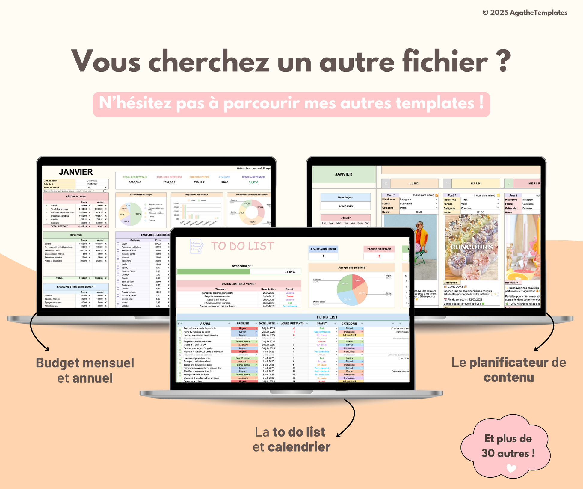 📁 Un fichier PDF contenant le lien pour accéder à votre modèle Google Sheets et/ou Excel.