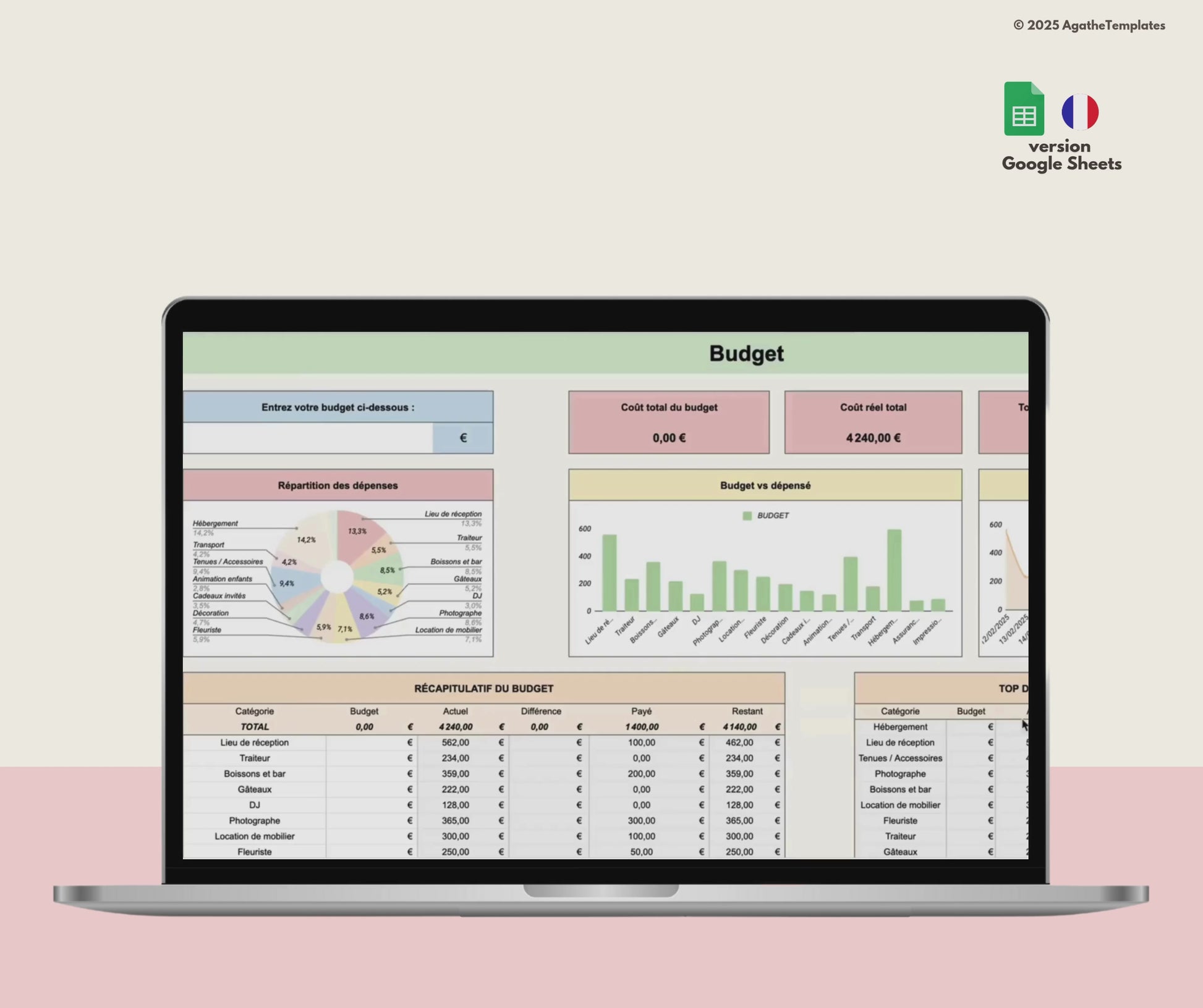 Ce fichier a été pensé pour vous aider à gérer tous les types d’événements; anniversaire, baby shower, fête privée, soirée à thème, pot de départ ou tout autre moment important. Grâce à ses 16 onglets dynamiques et automatisés, suivez chaque détail avec clarté et simplicité.