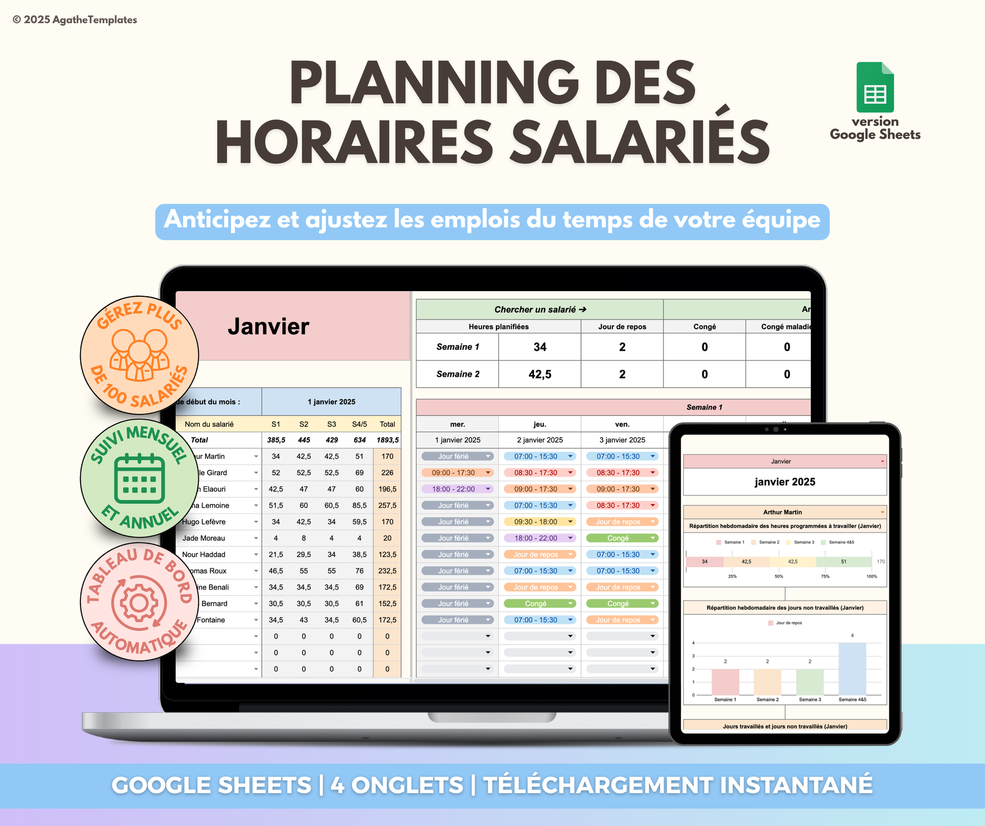 Gérez facilement les plannings de votre équipe grâce à ce fichier complet et automatisé 🗓️💼