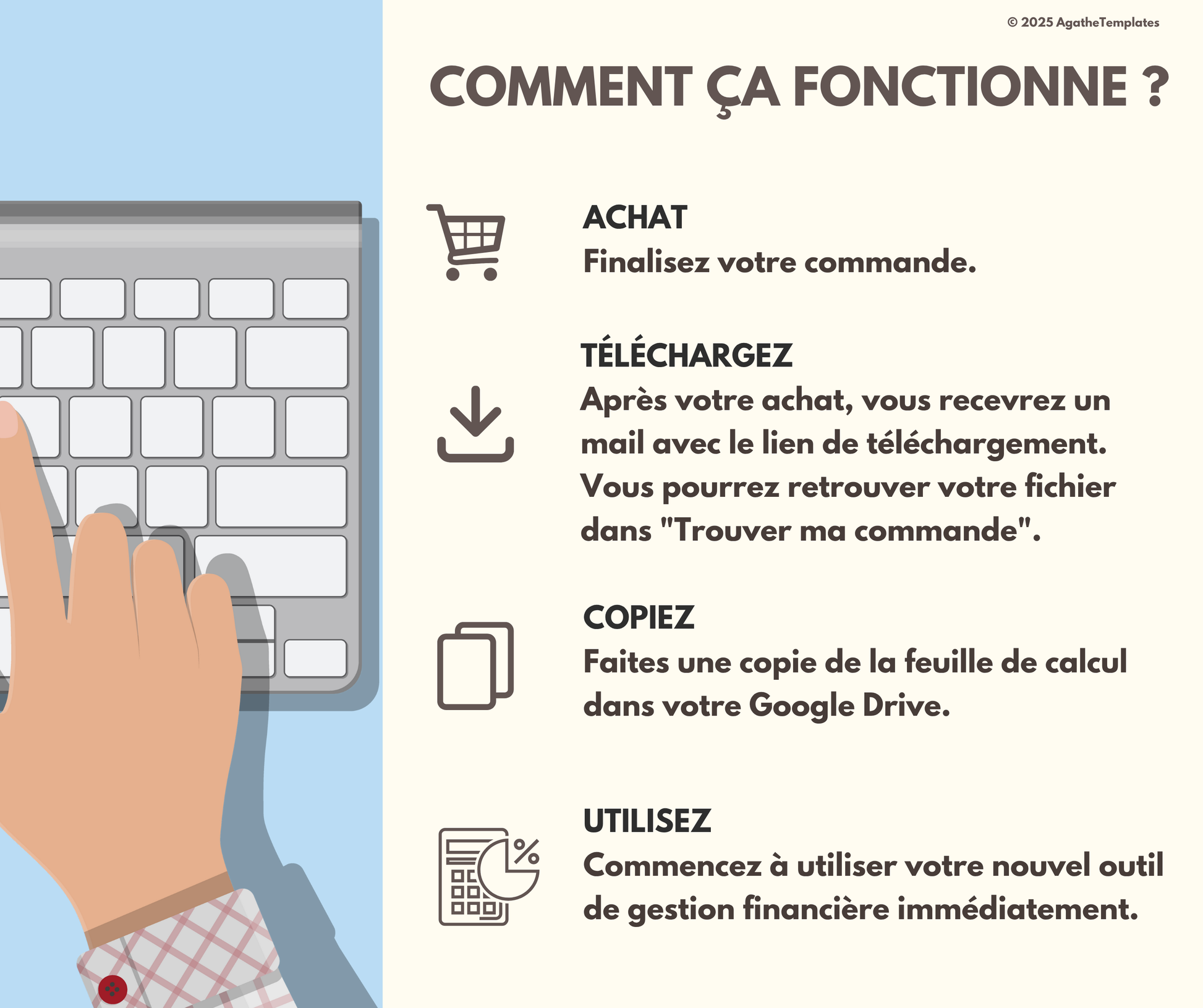 - Droits d’auteur : Ce produit est protégé par les droits d’auteur ©agathetemplates. Toute violation fera l’objet de poursuites conformément aux lois en vigueur.