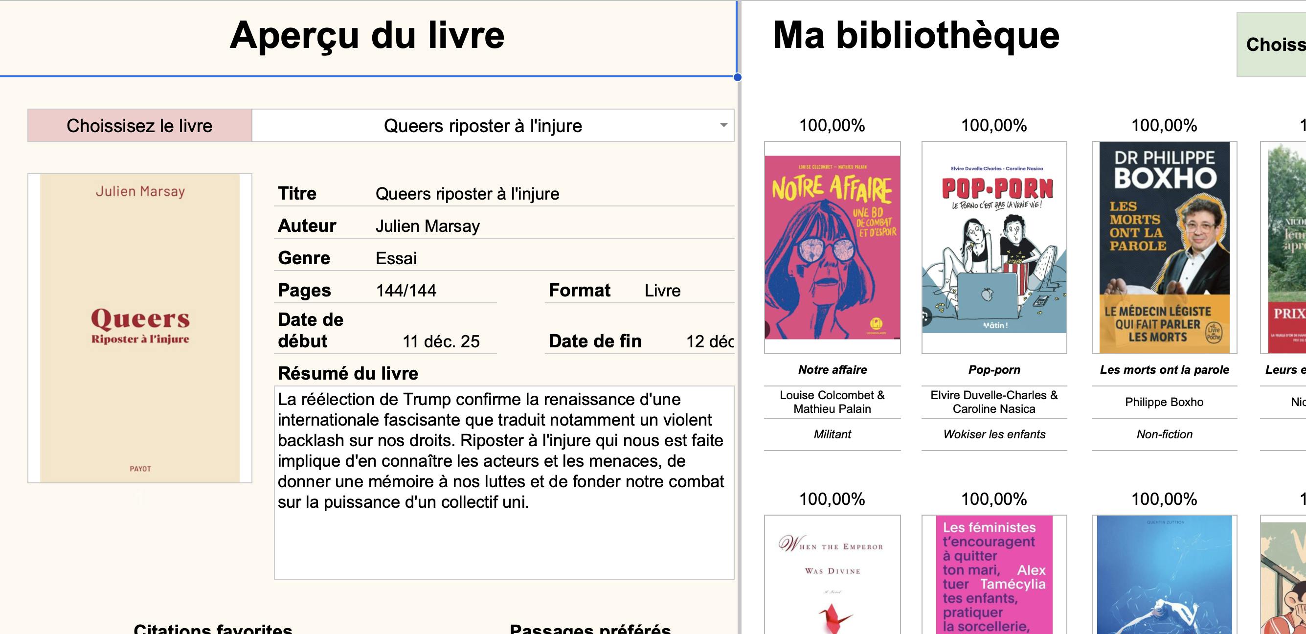 Suivi et journal des lectures, book tracker